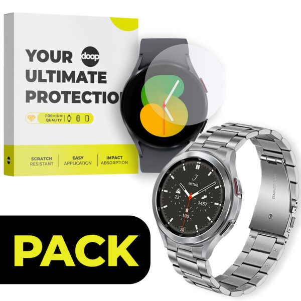 PACK CUREA DOOP STAINLESS SAMSUNG GALAXY WATCH 4 / 5 / 5 PRO / 6 / 7 / FE SILVER + DOOP GLASS SAMSUNG GALAXY WATCH 4 / 5 / 6 / 7 / FE (44 MM)