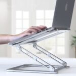 Standul vă permite să ridicați dispozitivul în unghiuri diferite, ceea ce se traduce prin îmbunătățirea ergonomiei și menținerea unei poziții sănătoase atunci când lucrați la laptop.